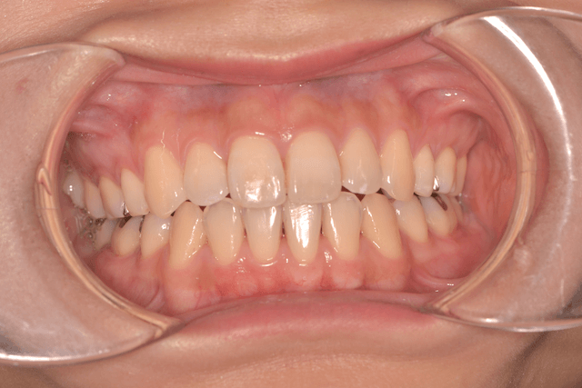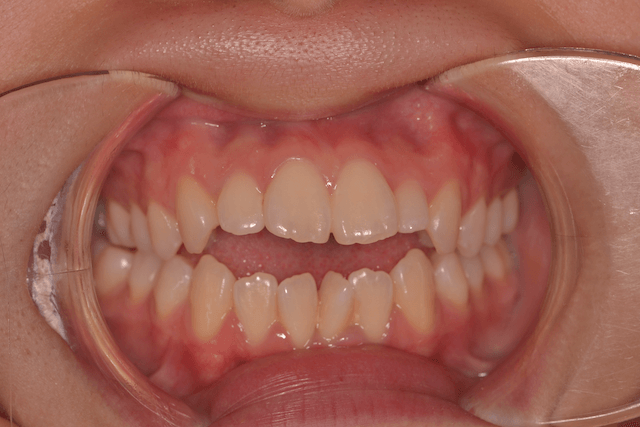 ご親族に開咬の方が多い場合には、この原因に当てはまることが多いです。開咬の環境的な要因とは、口輪筋弛緩、舌突出癖、低位舌、異常嚥下癖等の口輪筋機能不全や口腔周囲の悪習癖が原因になるといわれています。